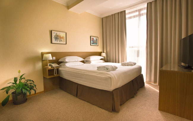 You may book your rooms at the City Hotel Bishkek through Booking.com. You may stay there or at another hotel in Bishkek.